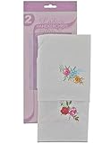 | This 2 pack of handkerchiefs makes a great accessory. They are made from 100% cotton and have a pretty floral pattern embroidered in one corner. Each set is packaged in a poly bag with hanging hole. Measures approximately 10 1/2" x 10 7/8" ...Read more |
